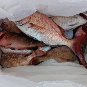 2025.10.18 潮:中潮 | 天気:曇り | 水温:26 午前便・午後便タイラバ・一つテンヤ出船 魚種:マダイ | 人数:7+5 コメント よく釣れたお客様は午前便タイラバ8匹+アコウ2匹、一つテンヤ5匹+アコウ3匹、午後便タイラバ12匹 一覧ページへ